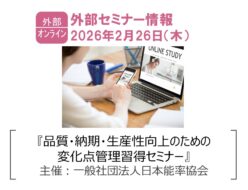 品質・納期・生産性向上のための変化点管理習得セミナー(2026年2月26日(木)開催)