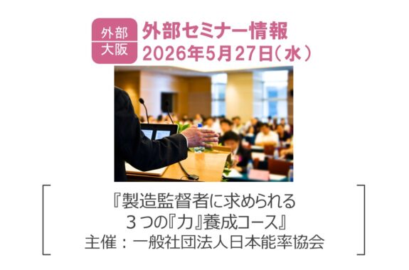 2026年5月27日(水)開催のセミナーで生産現場で監督者の役割は多岐にわたります。