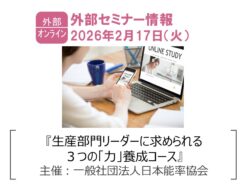 19年7月23-24日開催のセミナーにて「生産管理力レベルアップ」の実践ノウハウを事例を交えて紹介します。